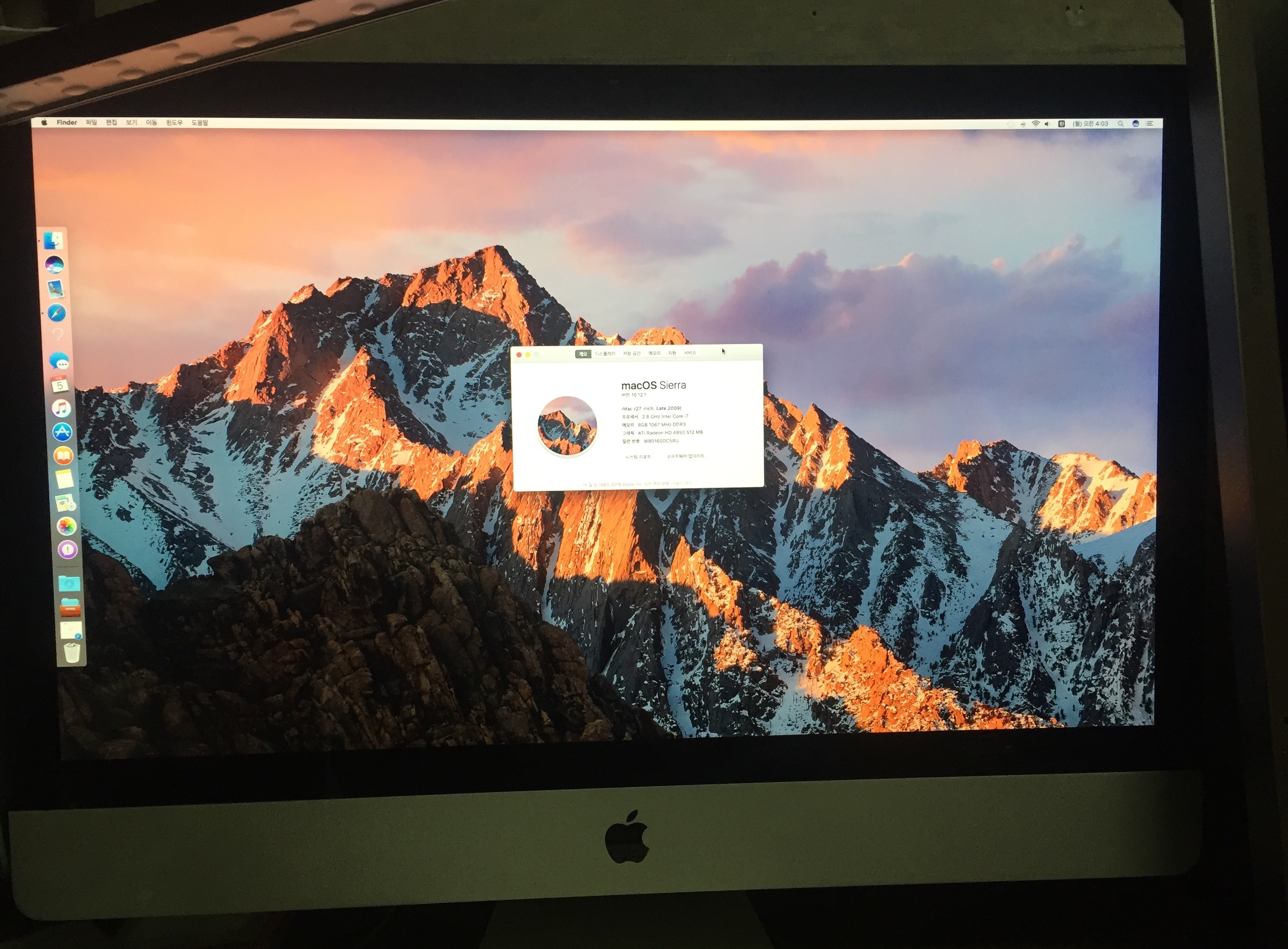 27인치 아이맥 쿼드코어 2.8G i7 (late 2009)입니다.