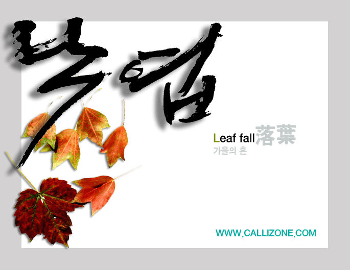 캘리그라피와 낙엽의 이미지를 조합해 보았습니다.
